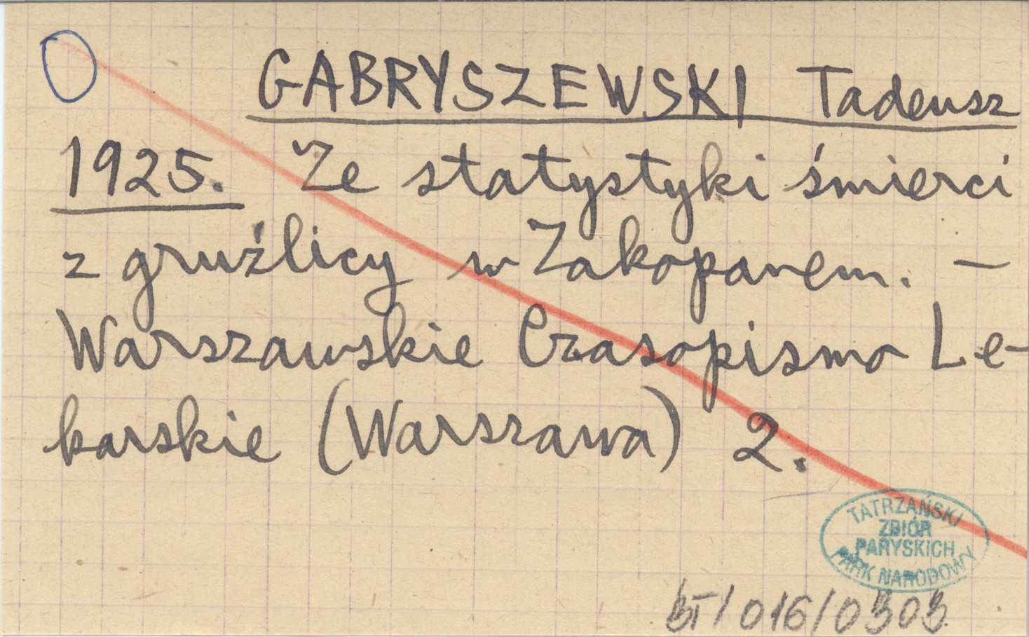 GABRYSZEWSKI Tadeusz 1925 Ze statystyki śmierci z gruźlicy w Zakopanem.