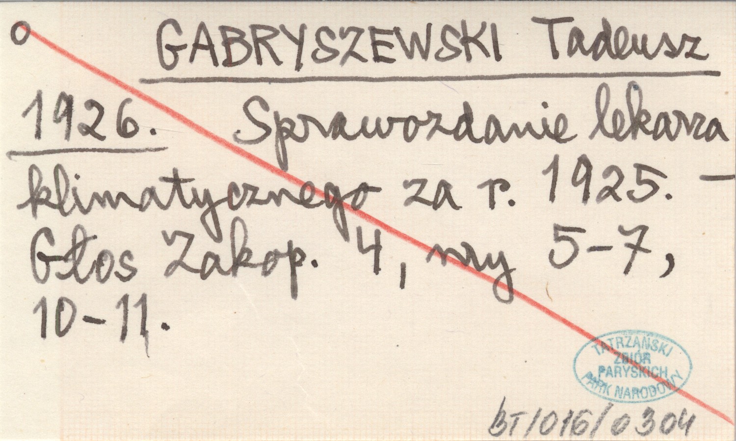 GABRYSZEWSKI Tadeusz 1926 Sprawozdanie lekarza klimatycznego za r. 1925.
