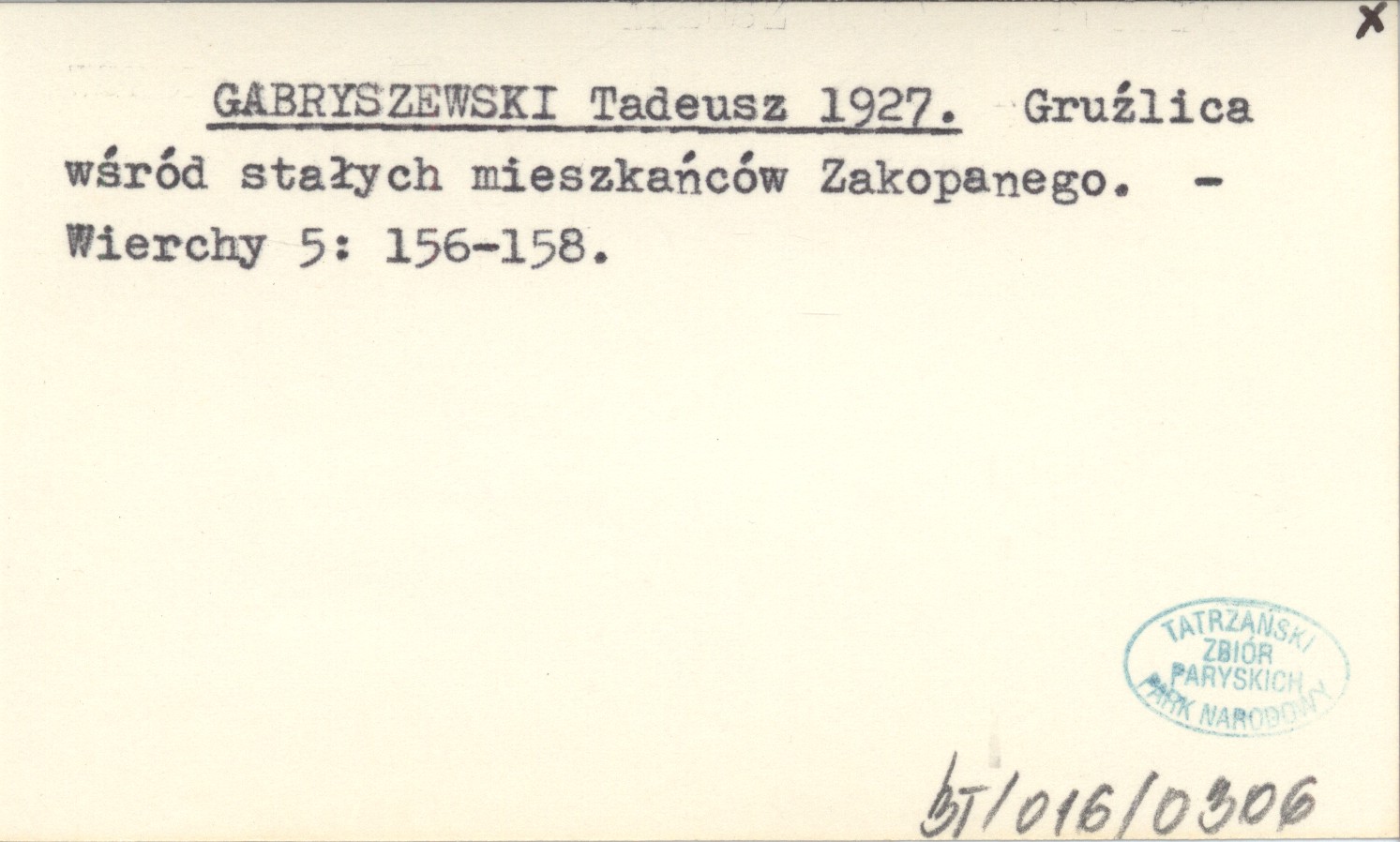 GABRYSZEWSKI Tadeusz 1927 Gruźlica wśród stałych mieszkańców Zakopanego.