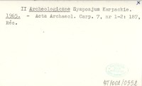 I Archeologiczne Sympozjum Karpackie (11-14 VI 1961). 1963