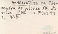 Architektúra na Slovensku do polovice XIX. storočia. 1958
