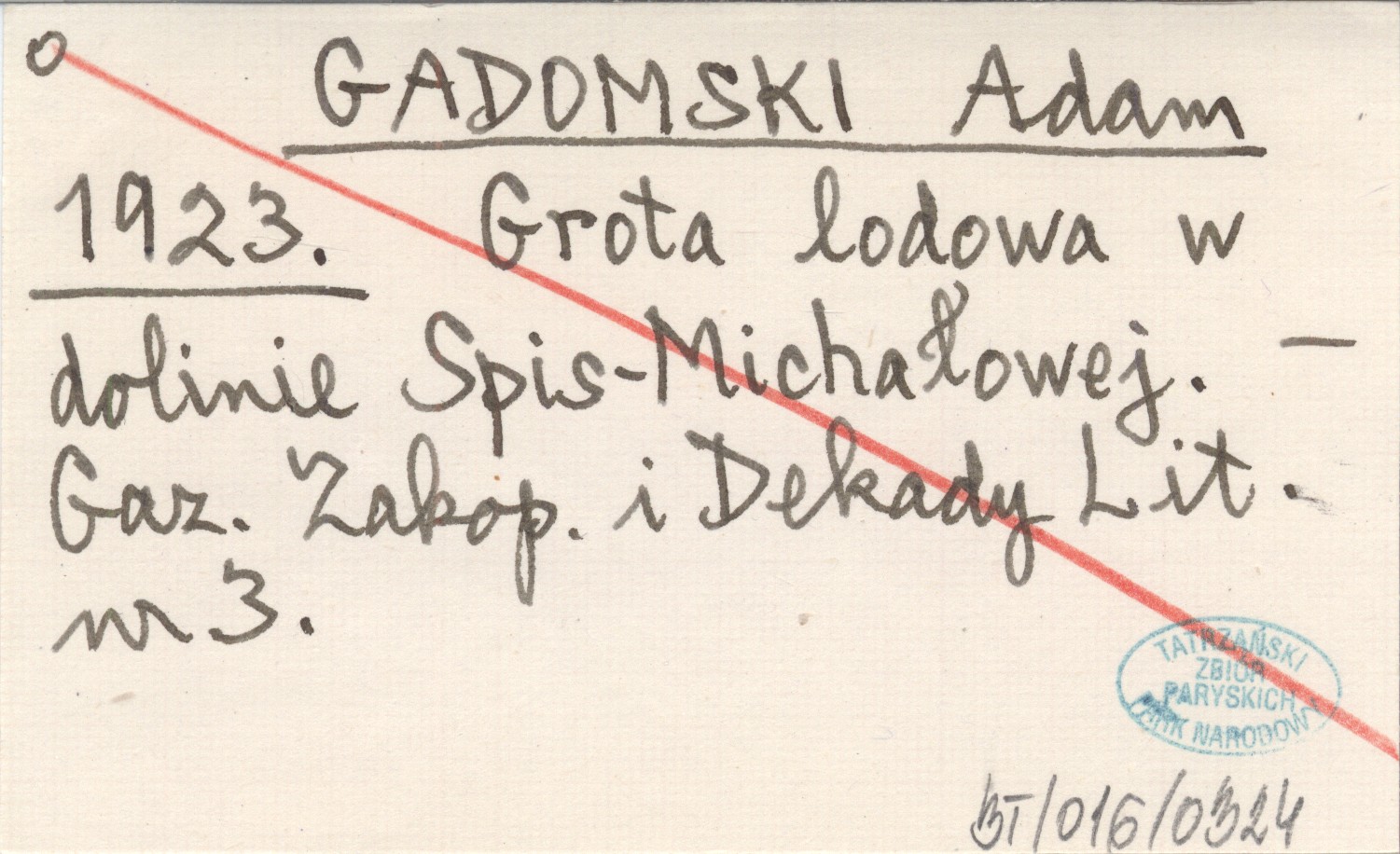 GADOMSKI Adam 1923 Grota lodowa w dolinie Spis-Michałowej.