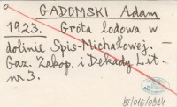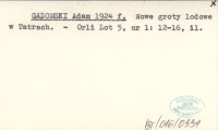 GADOMSKI Adam 1924 f Nowe groty lodowe w Tatrach.