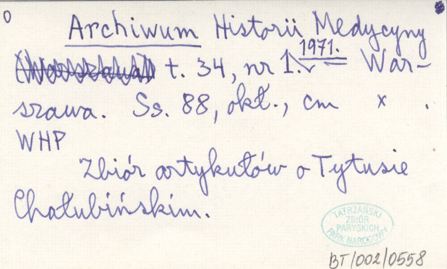 Warszawa , T. 34, nr 1: 88, okł. Zbiór artykułów o Tytusie Chałubińskim.