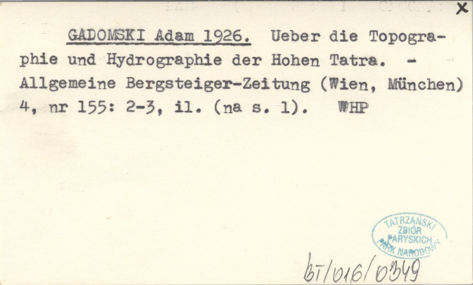 GADOMSKI Adam 1926 Ueber die Topographie und Hydrographie der Hohen Tatra.