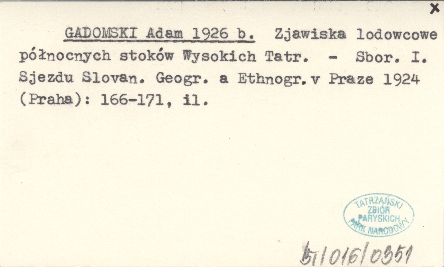 GADOMSKI Adam 1926 b Zjawiska lodowcowe północnych stoków Wysokich Tatr.