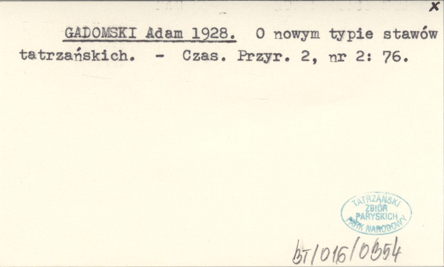 GADOMSKI Adam 1928 O nowym typie stawów tatrzańskich.