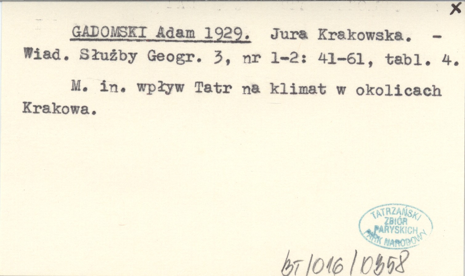 Wiadomości Służby Geograficznej, 3, nr 1-2: 41-61, 4 k. tabl. M.in. wpływ Tatr na klimat w okolicach Krakowa.