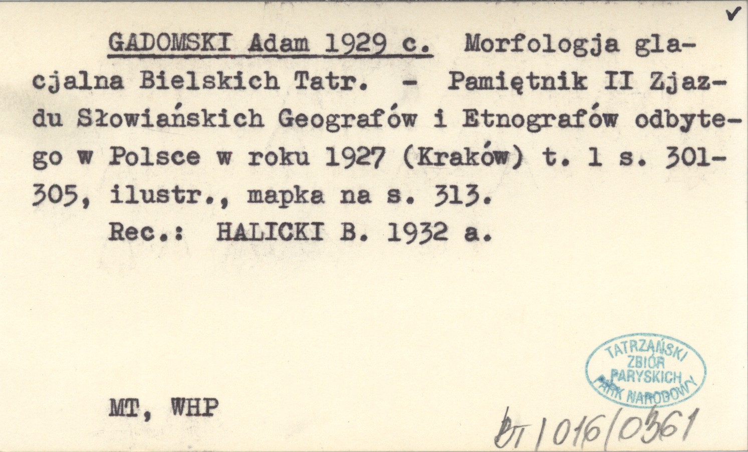 GADOMSKI Adam 1929 c Morfologja glacjalna Bielskich Tatr.