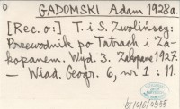 GADOMSKI Adam 1928 a T. i S. Zwolińscy: Przewodnik po Tatrach i Zakopanem. Zakopane 1927.