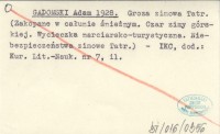 GADOMSKI Adam 1928 Groza zimowa Tatr. (Zakopane w całunie śnieżnym. Czar zimy górskiej. Wycieczka narciarsko-turystyczna. Niebezpieczeństwa zimowe Tatr.).