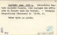 GADOMSKI Adam 1929 a Tatrzańskie kaptaże dopływów Dunajca. (Les captages des affluants du Dunajec dans les Tatras).
