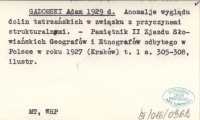 GADOMSKI Adam 1929 d Anomalje wyglądu dolin tatrzańskich w związku z przyczynami strukturalnymi.