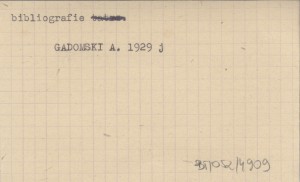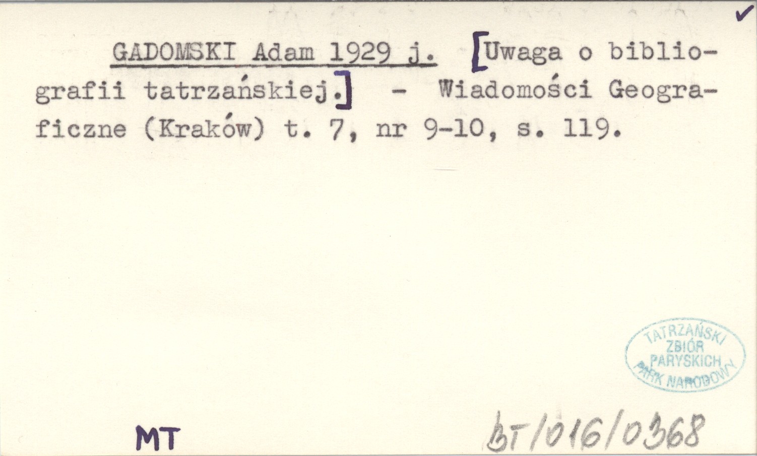 GADOMSKI Adam 1929 j [Uwaga o bibliografii tatrzańskiej.].