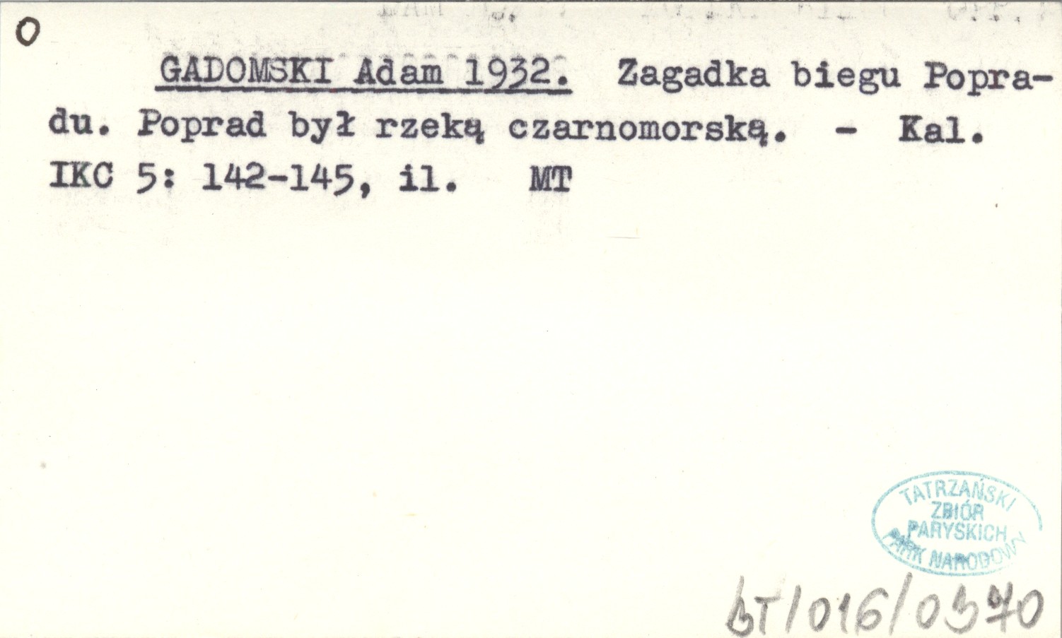 GADOMSKI Adam 1932 Zagadka biegu Popradu. Poprad był rzeką czarnomorską.