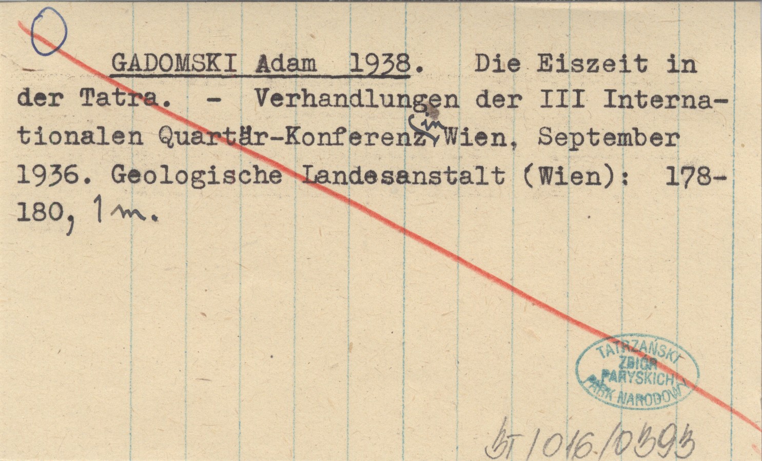 GADOMSKI Adam 1938 Die Eiszeit in der Tatra. Verhandlungen der III Internationalen Quartär-Konferenz in Wien, September 1936.