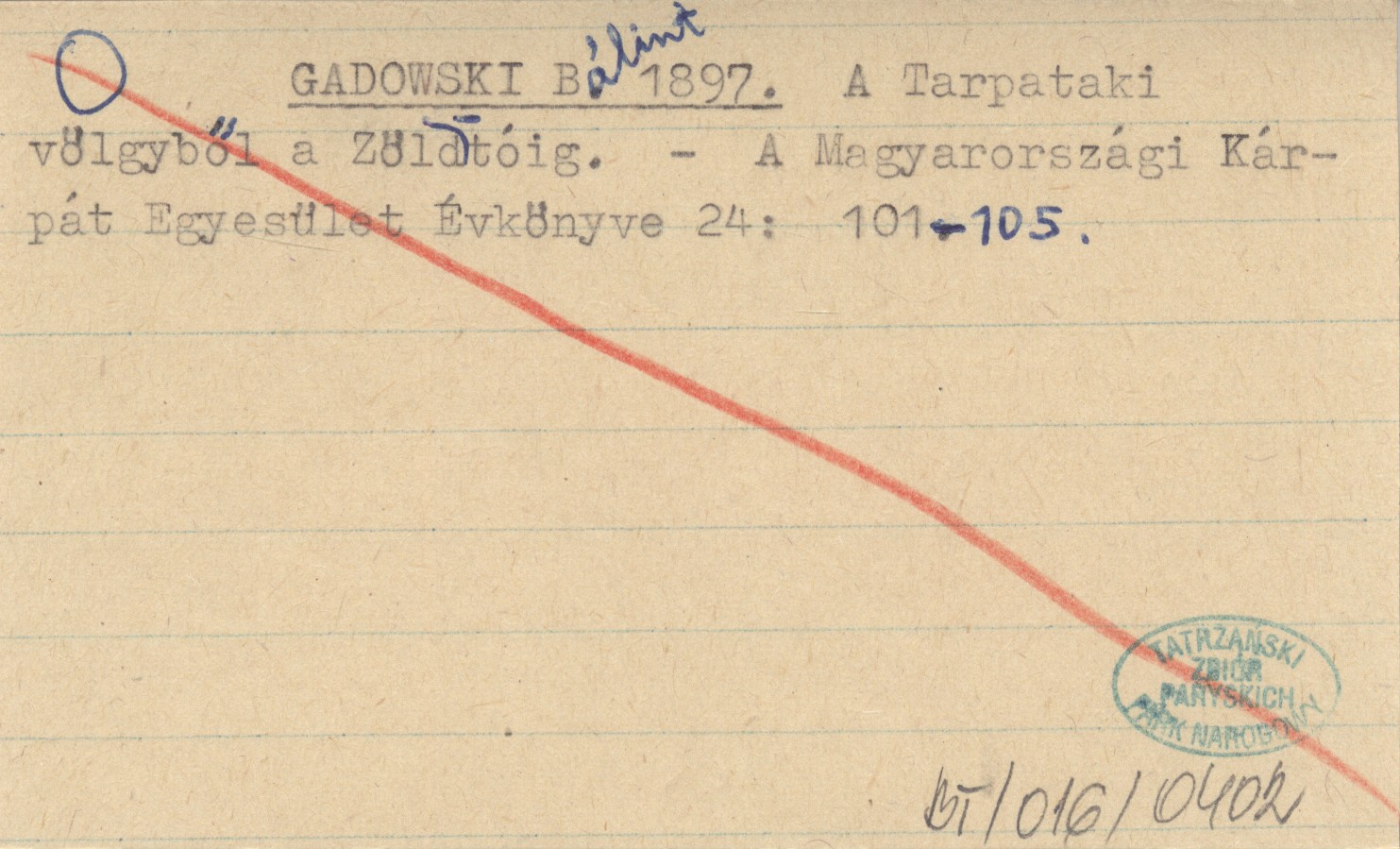 GADOWSKI Bálint 1897 A Tarpataki völgyből a Zöld-tóig.