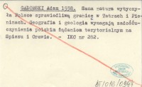 GADOMSKI Adam 1938 Sama natura wytyczyła Polsce sprawiedliwą granicę w Tatrach i Pieninach. Geografia i geologia wymagają zadośćuczynienia polskim żądaniom terytorialnym na Spiszu i Orawie.