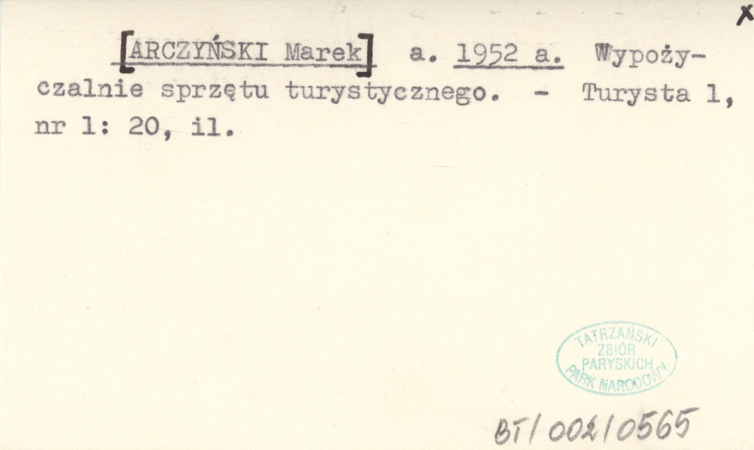 a. [ARCZYŃSKI Marek] 1952 a Wypożyczalnie sprzętu turystycznego.