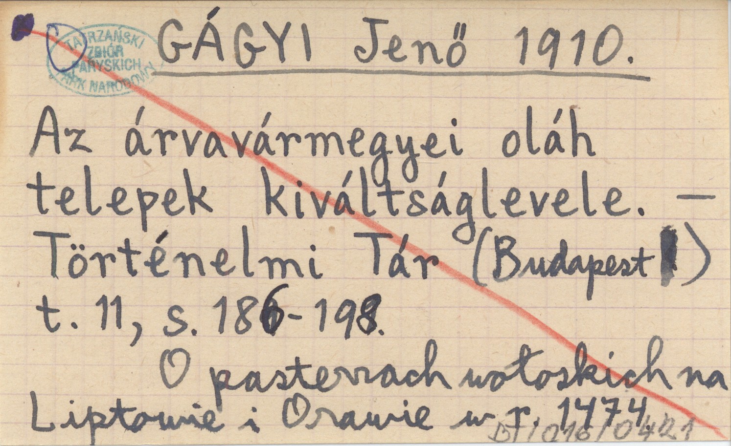 GÁGYI Jenő 1910 Az árvavármegyei oláh telepek kiváltságlevele.