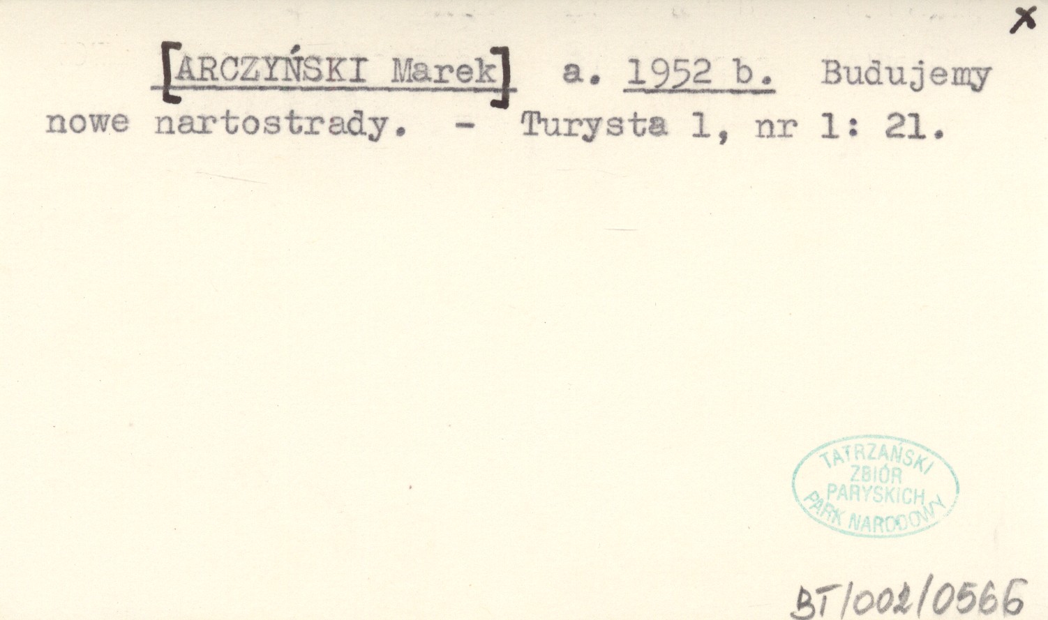 a. [ARCZYŃSKI Marek] 1952 b Budujemy nowe nartostrady.
