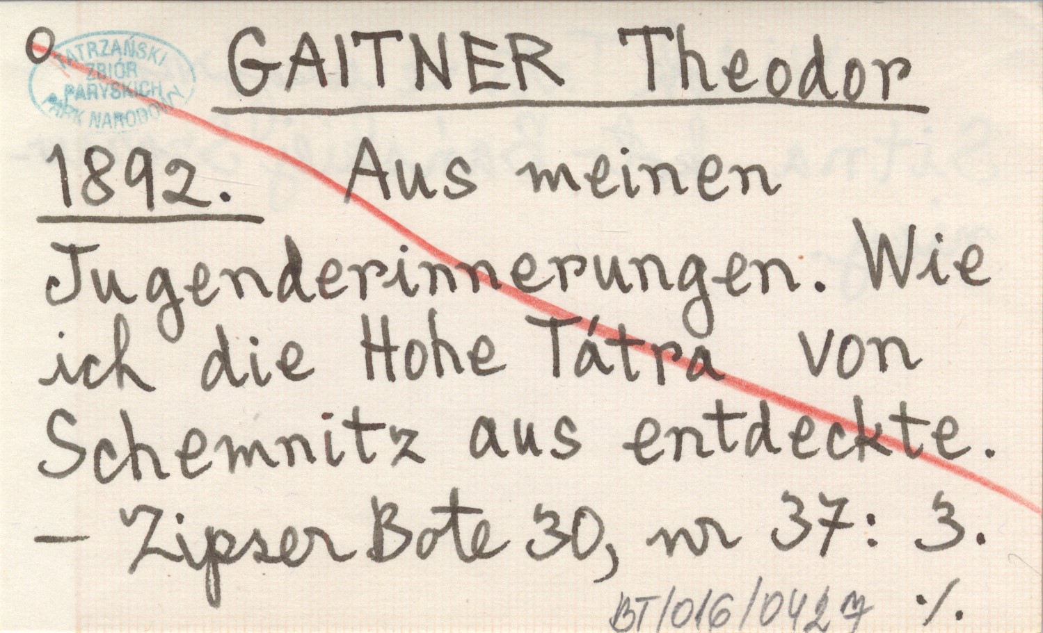 GAITNER Theodor 1892 Aus meinen Jugenderinnerungen. Wie ich die Hohe Tátra von Schemnitz aus entdeckte.