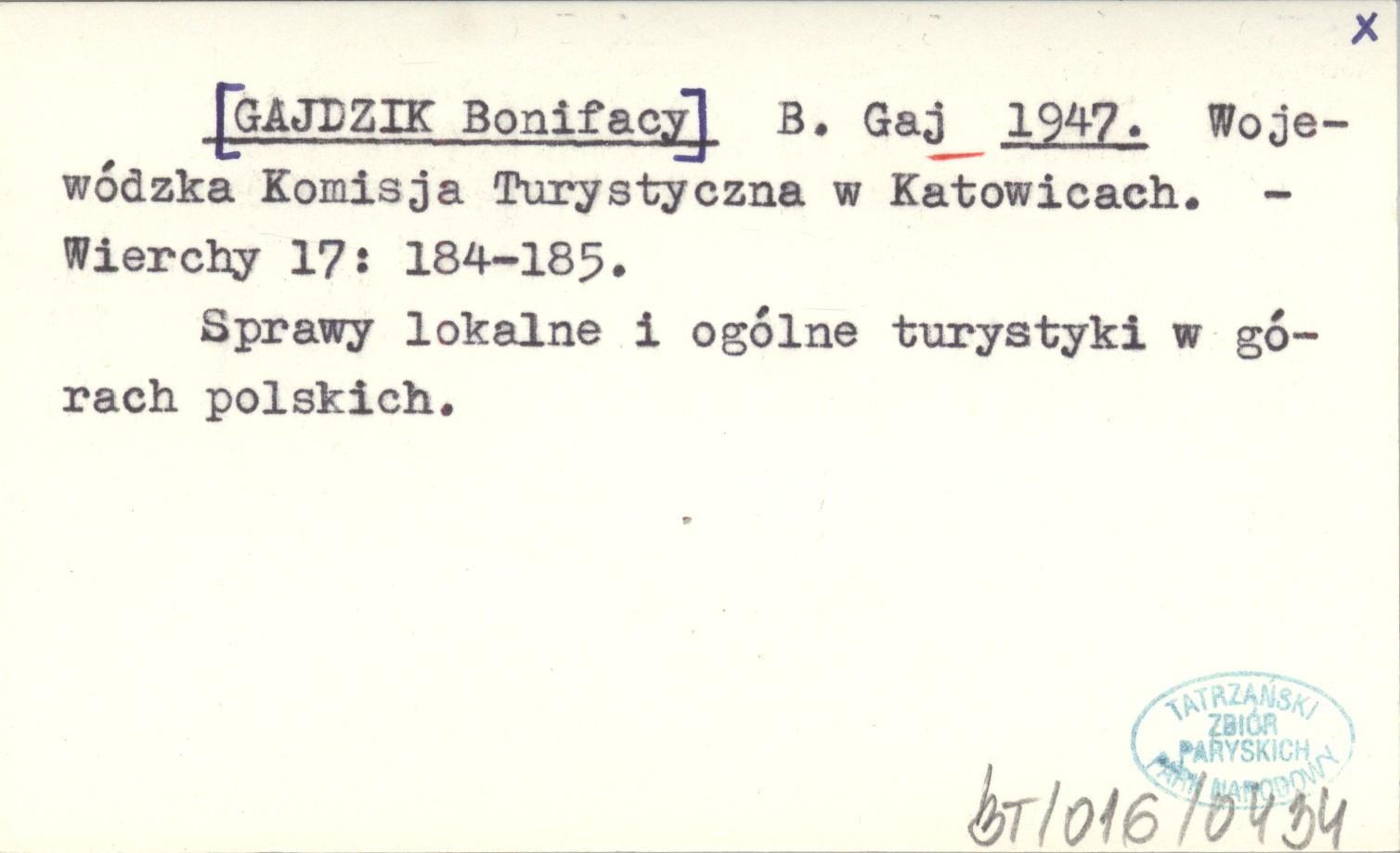 B. Gaj [GAJDZIK Bonifacy] 1947 Wojewódzka Komisja Turystyczna w Katowicach.