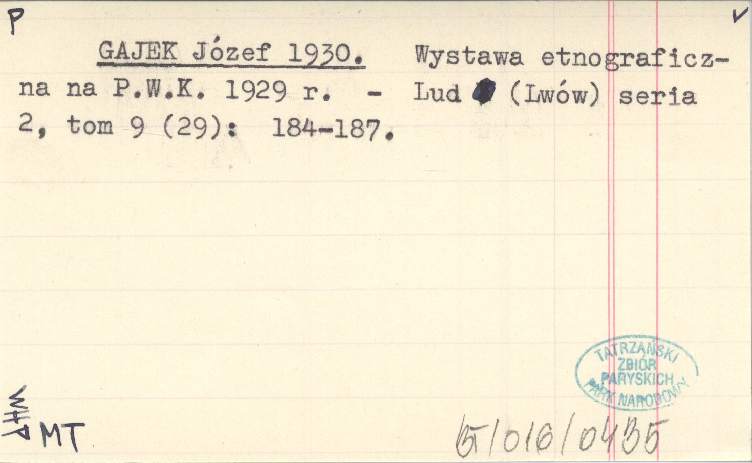 GAJEK Józef 1930 Wystawa etnograficzna na P.W.K. 1929 r.