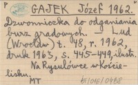 GAJEK Józef 1962 Dzwonniczka do odganiania burz gradowych.