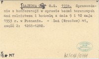 O.G. [GAJKOWA Olga] 1954 Sprawozdanie z konferencji w sprawie badań terenowych nad rolnictwem i hodowlą z dnia 9 i 10 maja 1953 r. w Poznaniu.