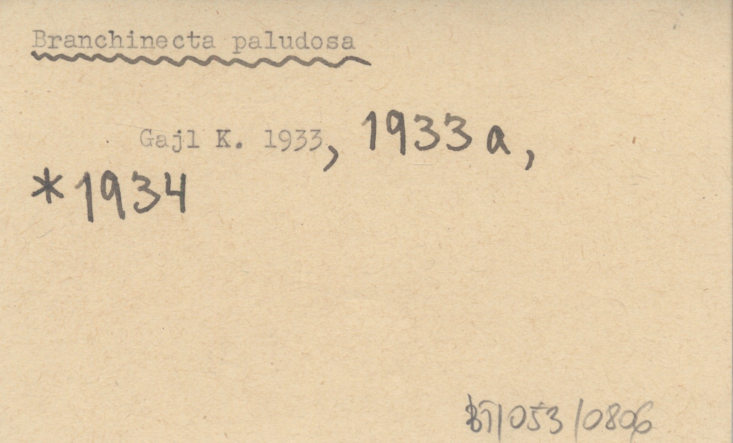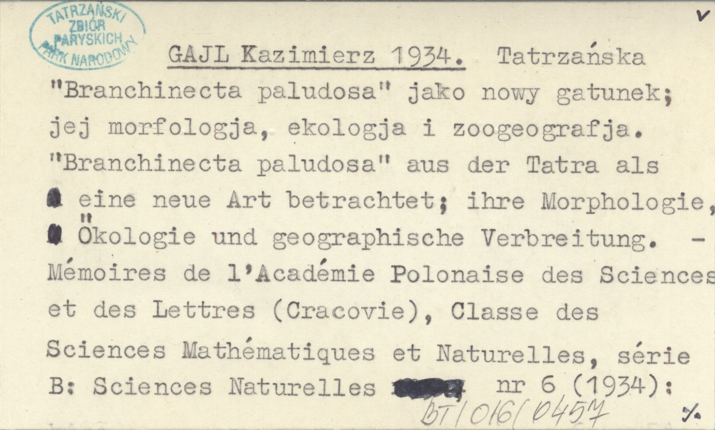 GAJL Kazimierz 1934 Tatrzańska "Branchinecta paludosa" jako nowy gatunek; jej morfologja, ekologja i zoogeografja. "Brancinecta paludosa" aus der Tatra als eine neue Art betrachtet; ihre Morphologie, Őkologie und geographische Verbreitung.