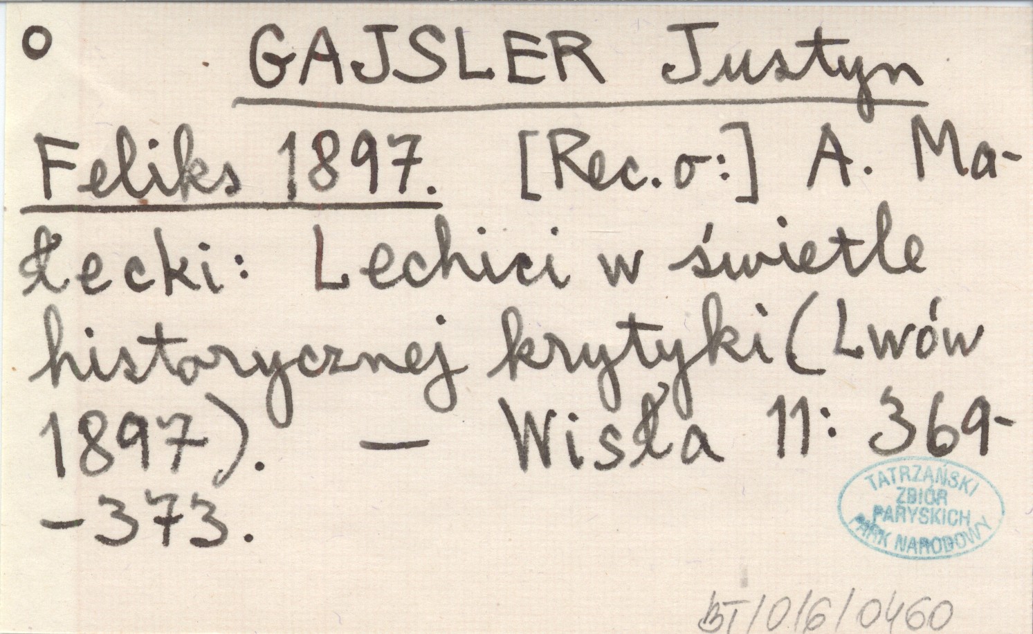 GAJSLER Justyn Feliks 1897 A. Małecki: Lechici w świetle historycznej krytyki (Lwów 1897).
