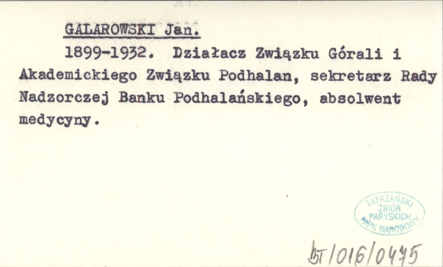 1899-1932. Działacz Związku Górali i Akademickiego Związku Podhalan, sekretarz Rady Nadzorczej Banku Podhalańskiego, absolwent medycyny.