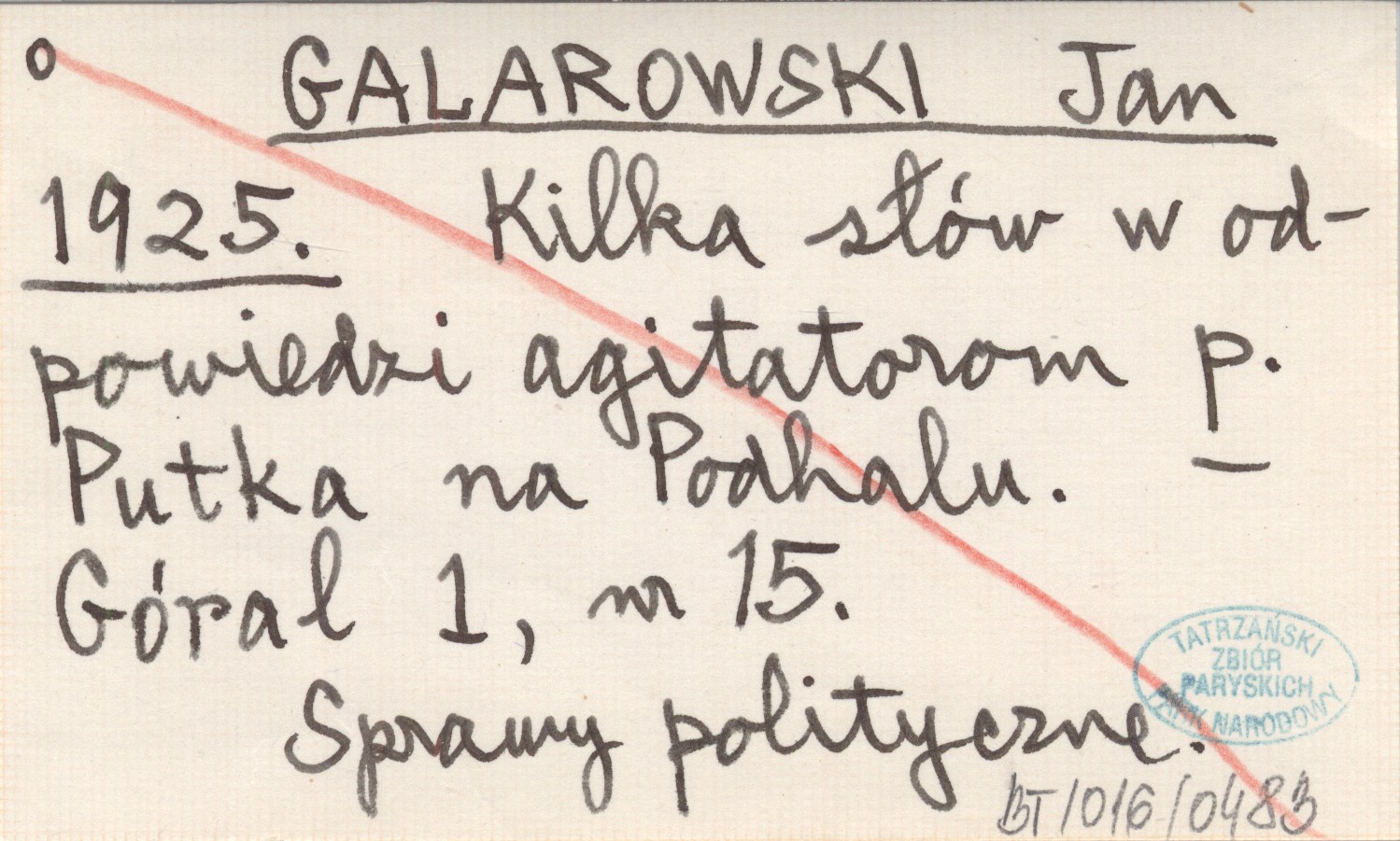 GALAROWSKI Jan 1925 Kilka słów w odpowiedzi agitatorom p. Putka na Podhalu.