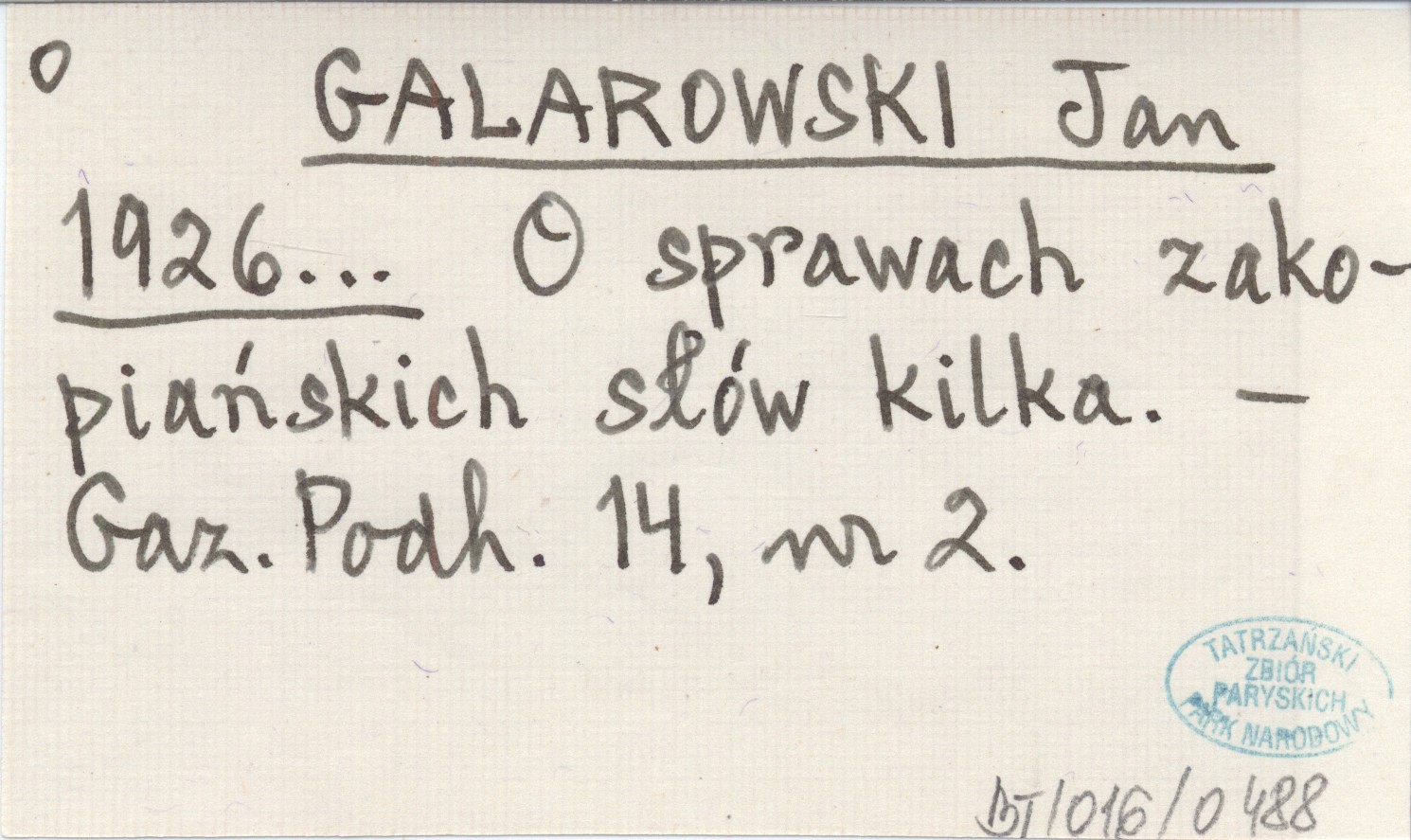 GALAROWSKI Jan 1926... O sprawach zakopiańskich słów kilka.
