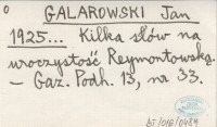 GALAROWSKI Jan 1925... Kilka słów na uroczystość Reymontowską.