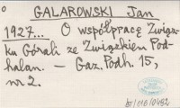GALAROWSKI Jan 1927... O współpracę Związku Górali ze Związkiem Podhalan.