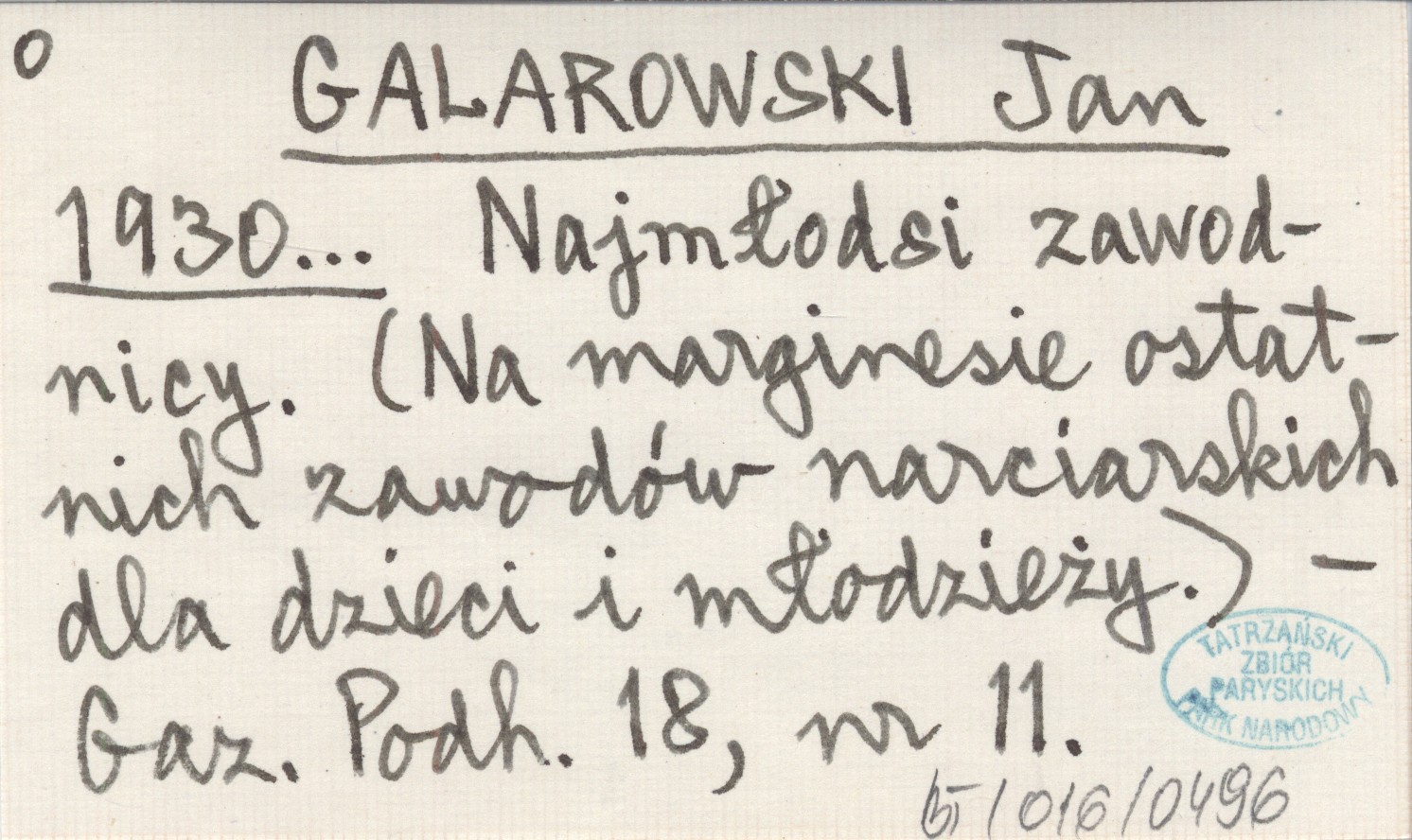 GALAROWSKI Jan 1930... Najmłodsi zawodnicy. (Na marginesie ostatnich zawodów narciarskich dla dzieci i młodzieży.).