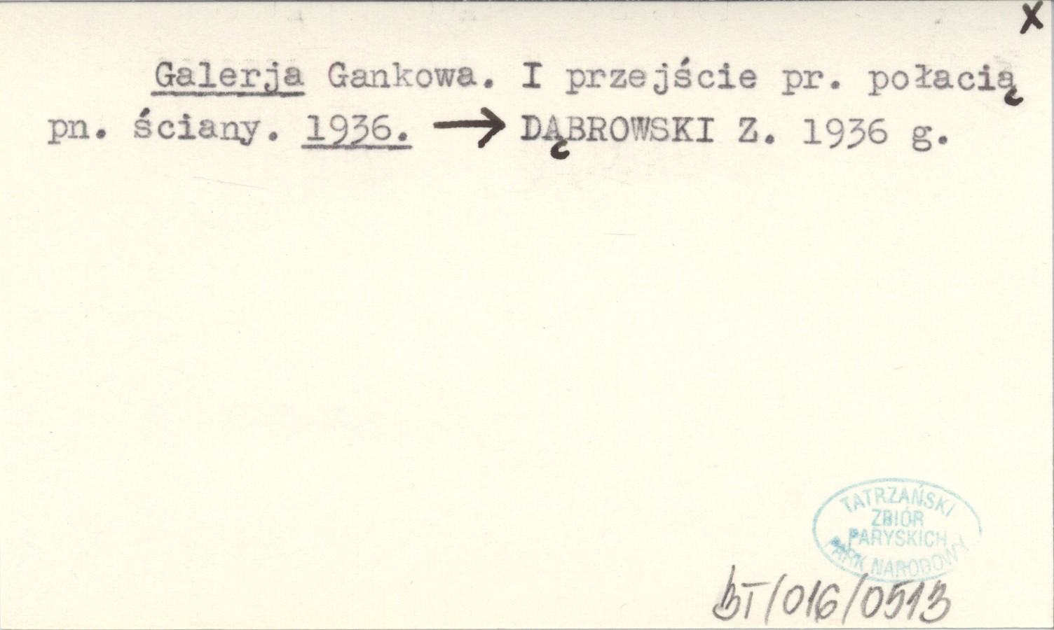 Galerja Gankowa. I przejście pr. połacią pn. ściany. 1936
