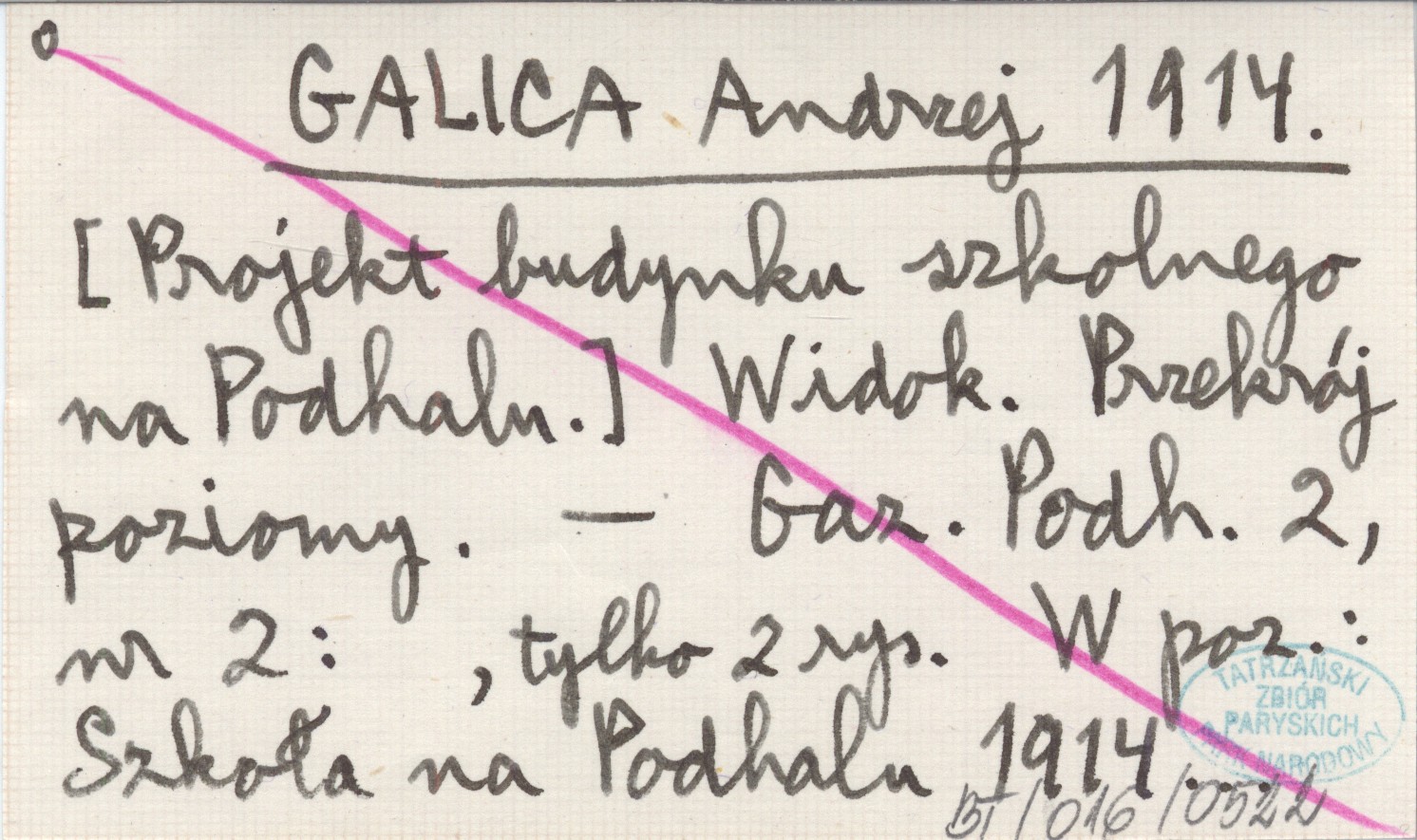 GALICA Andrzej 1914 [Projekt budynku szkolnego na Podhalu.] Widok. Przekrój poziomy.