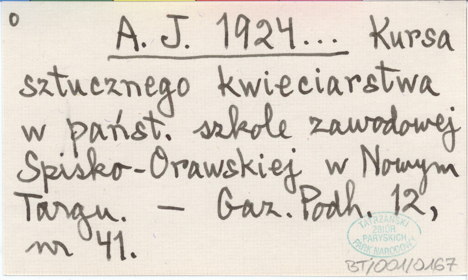 A. J. 1924... Kursa sztucznego kwieciarstwa w państw. szkole zawodowej Spisko-Orawskiej w Nowym Targu.