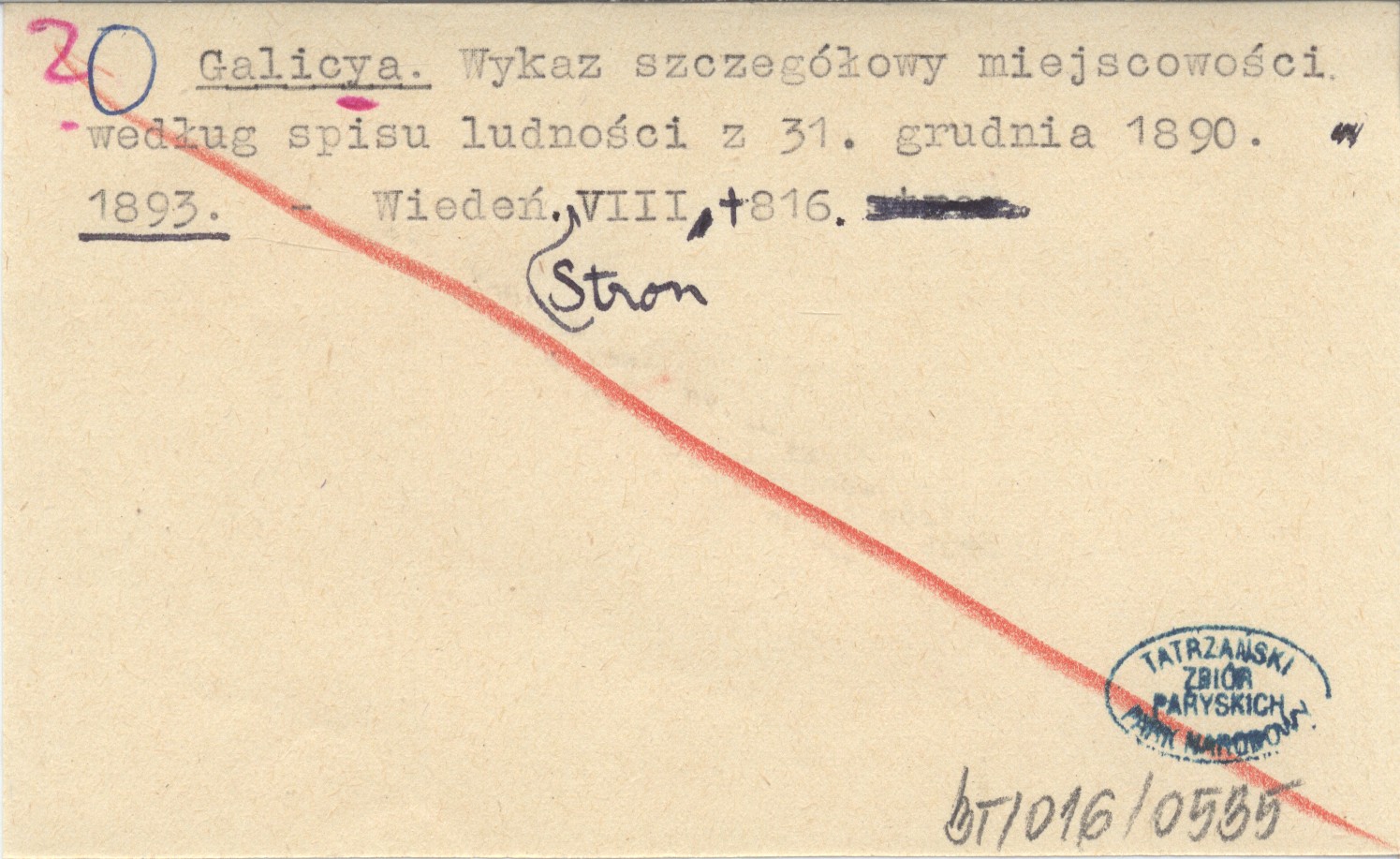 Galicya. Wykaz szczegółowy miejscowości według spisu ludności z 31. grudnia 1890. 1893