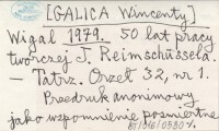 Wigal [GALICA Wincenty] 1979 50 lat pracy twórczej J. Reimschüssela.