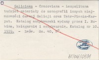 Galiciana - Cracoviana - Leopolitana tudzież materiały do monografii innych miejscowości dawnej Galicji oraz Tatr-Pienin-Karpat. Katalog antykwarski wydany przez I. Rubina, księgarnię i antykwarnię. Katalog nr 10. 1939
