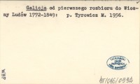 Galicja od pierwszego rozbioru do Wiosny Ludów 1772-1849.