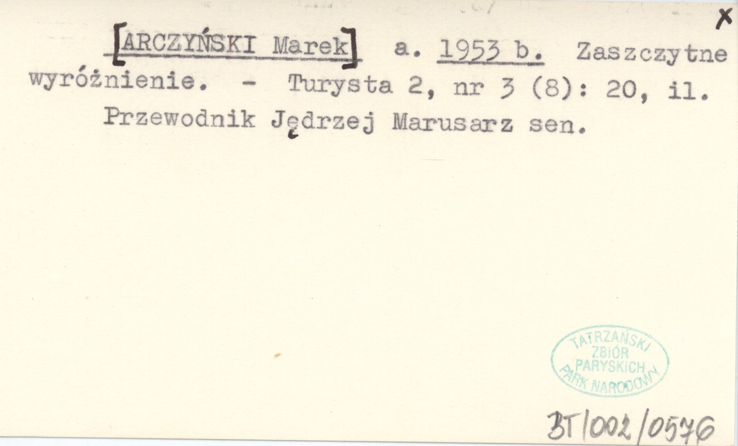 a. [ARCZYŃSKI Marek] 1953 b Zaszczytne wyróżnienie.