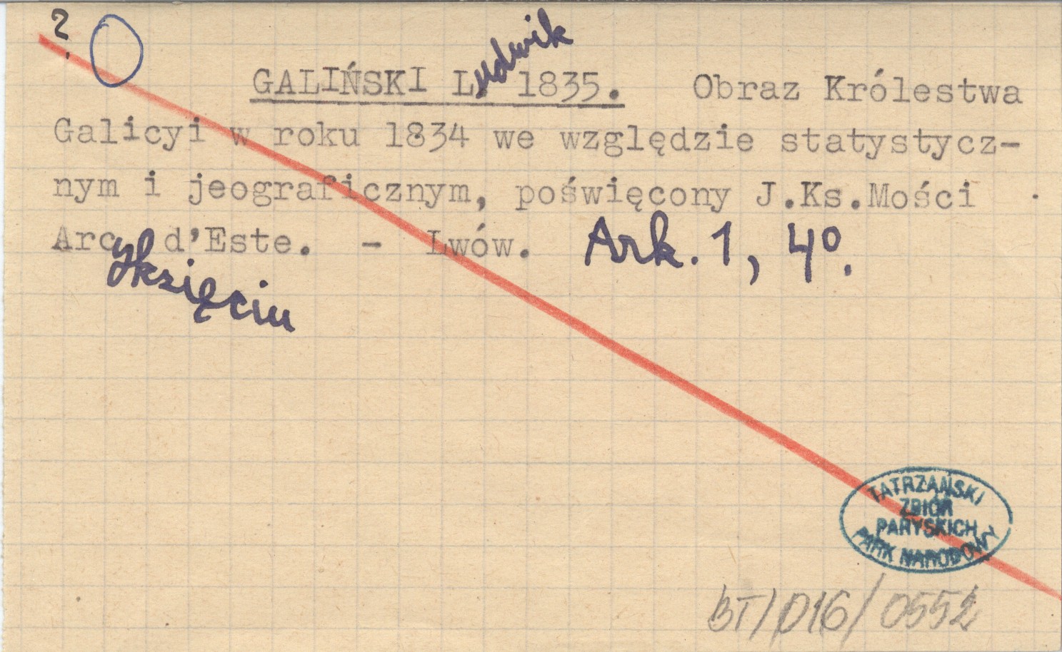 GALIŃSKI Ludwik 1835 Obraz Królestwa Galicyi w roku 1834 we względzie statystycznym i jeograficznym, poświęcony J. Ks. Mości Arcyksięciu d'Este.