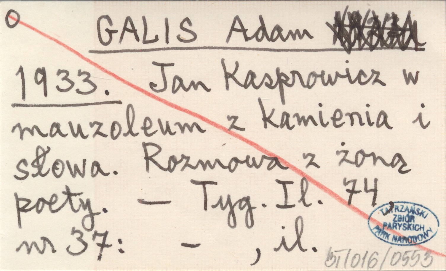 GALIS Adam 1933 Jan Kasprowicz w mauzoleum z kamienia i słowa. Rozmowa z żoną poety.