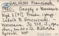 GALIŃSKI Franciszek 1960 Gawędy o Warszawie. Przedm. i przyp.: Ludwik B. Grzeniewski.