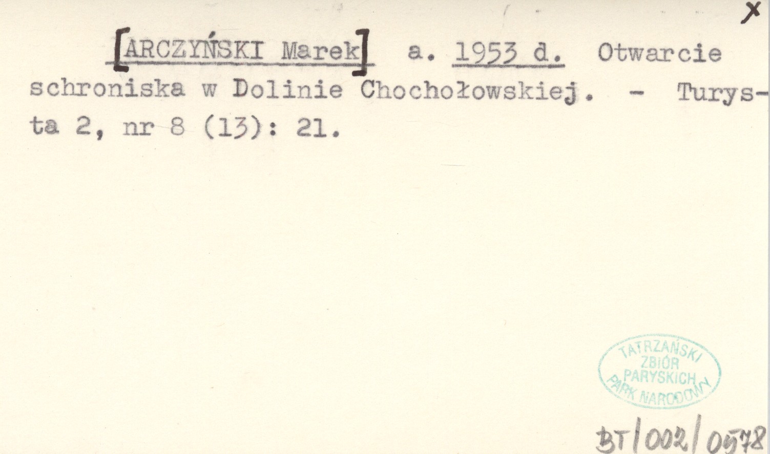 a. [ARCZYŃSKI Marek] 1953 d Otwarcie schroniska w Dolinie Chochołowskiej.